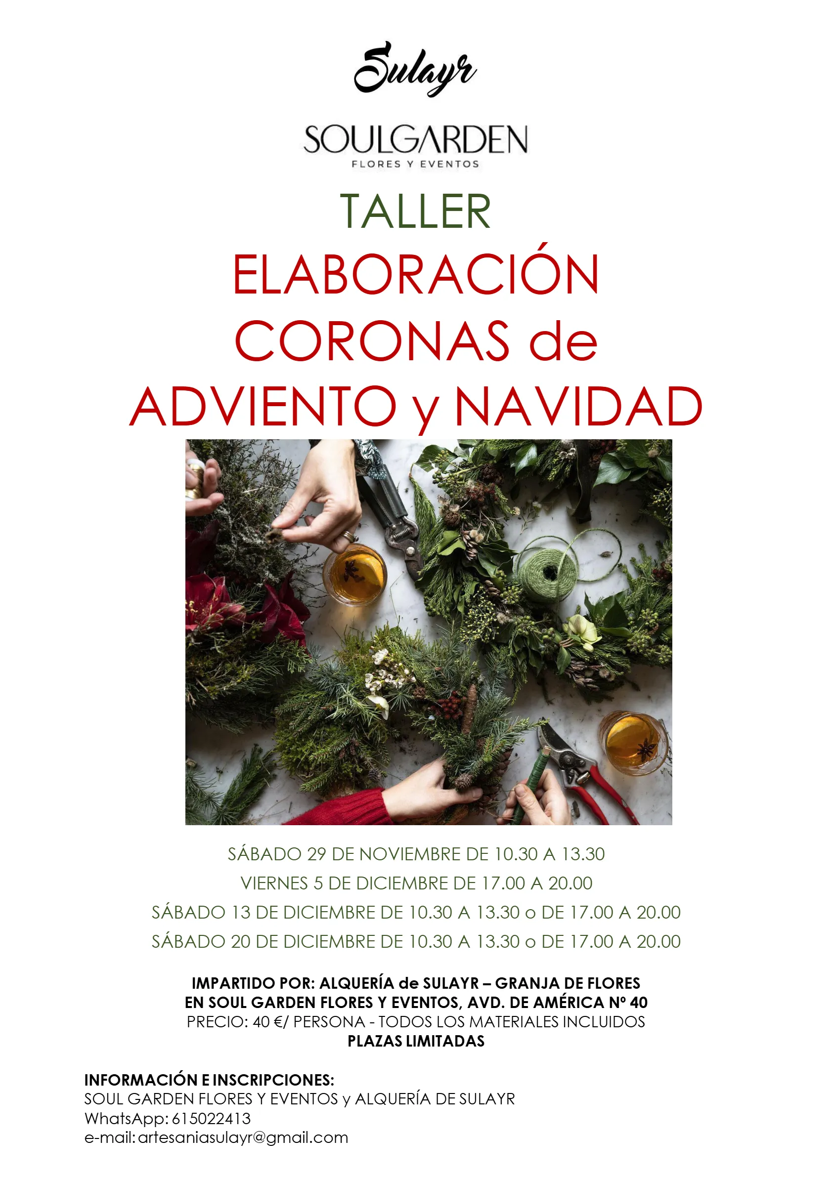 🎄 ¡Bienvenidos al Taller de Coronas de Adviento y Navidad en Alquería de Sulayr en las instalaciones de SoulGarden! 🎄