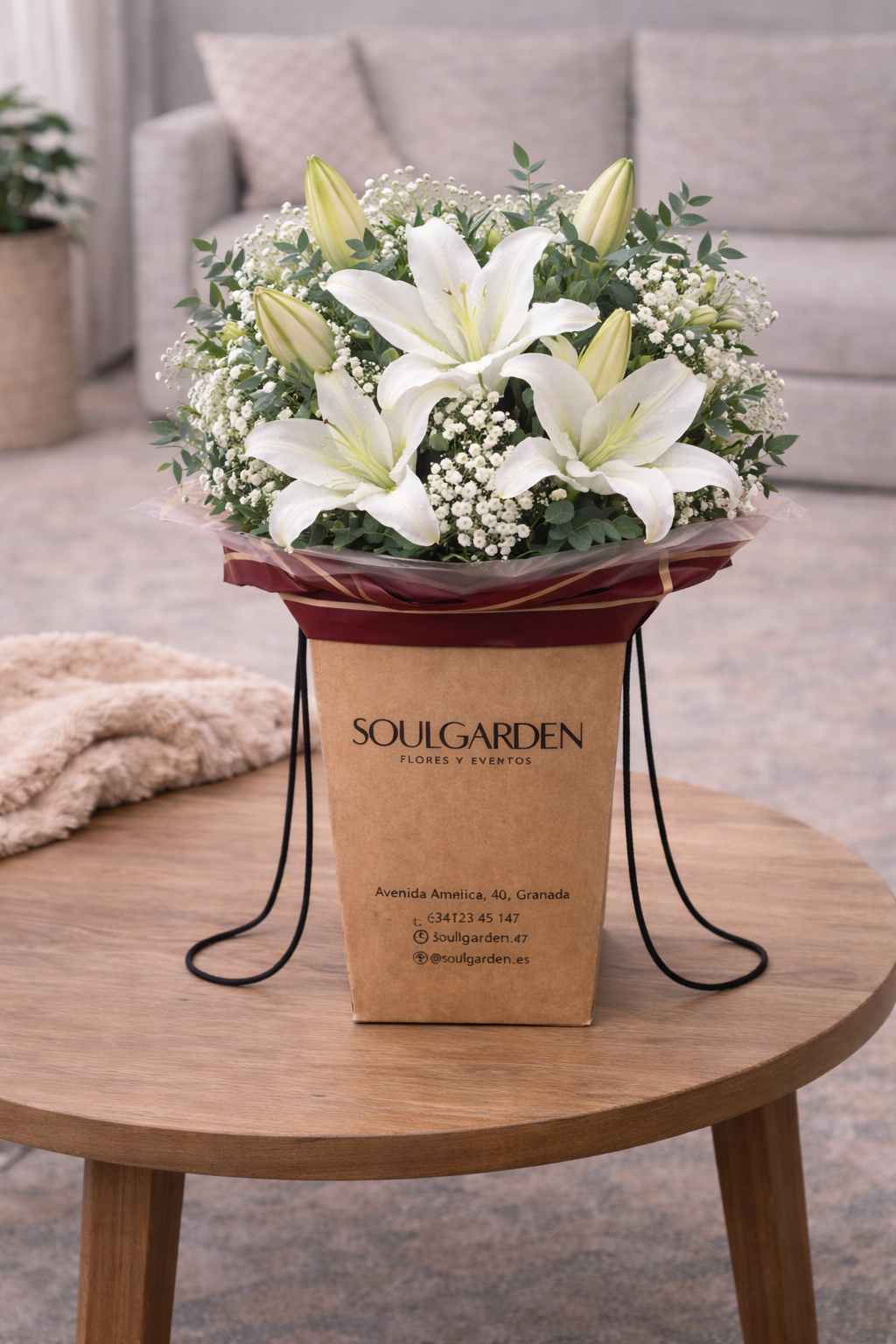 Ramo de lirios blancos de la variedad oriental. Perfumados y elegantes. Recibirás algunas de sus flores aún por abrir, así garantizamos su frescura y una mayor durabilidad.