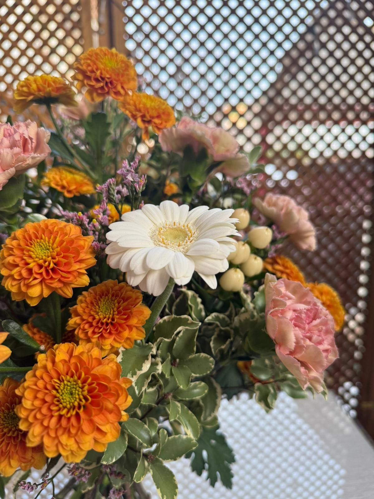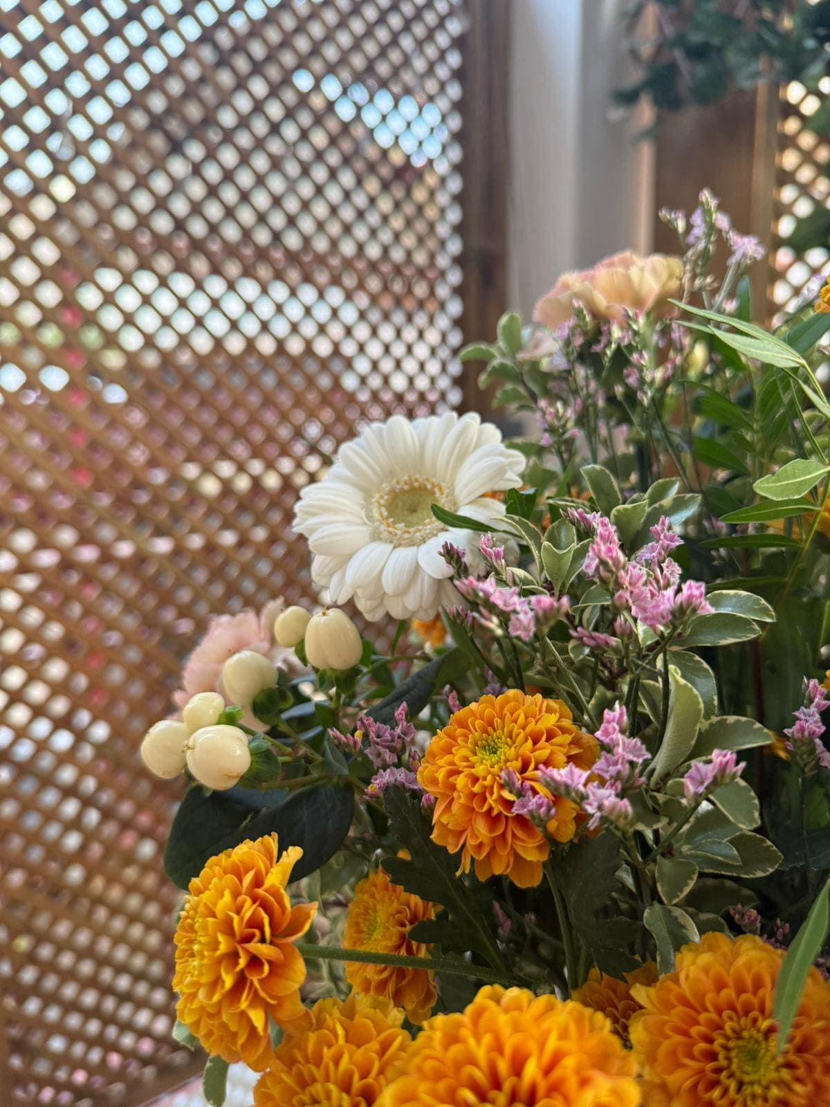 El Ramo Mandarina Soulgarden 🍊 es una de nuestras composiciones más luminosas y equilibradas, creada con una selección preciosa de margaritas naranjas, claveles crema, gerberas blancas, limonium rosa, hipericum blanco y verdes naturales. Desde el primer vistazo, este diseño destaca por su mezcla cálida de tonos y por la armonía entre texturas, logrando un estilo fresco, natural y perfecto para cualquier ambiente. 🌿✨