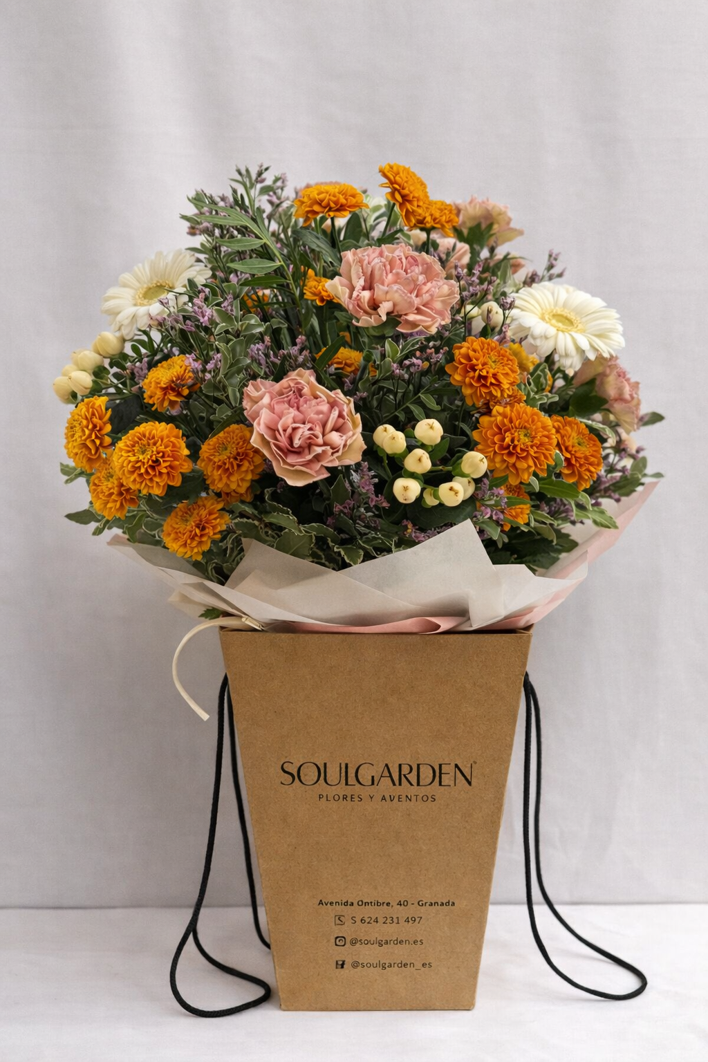 En Soulgarden elaboramos cada ramo de forma artesanal, cuidando la calidad de cada tallo y seleccionando flores frescas de proveedores de confianza. Queremos que el Ramo Mandarina Soulgarden llegue siempre en perfectas condiciones, con una presentación cuidada y con una duración óptima para que puedas disfrutarlo durante más tiempo. 💛🌱